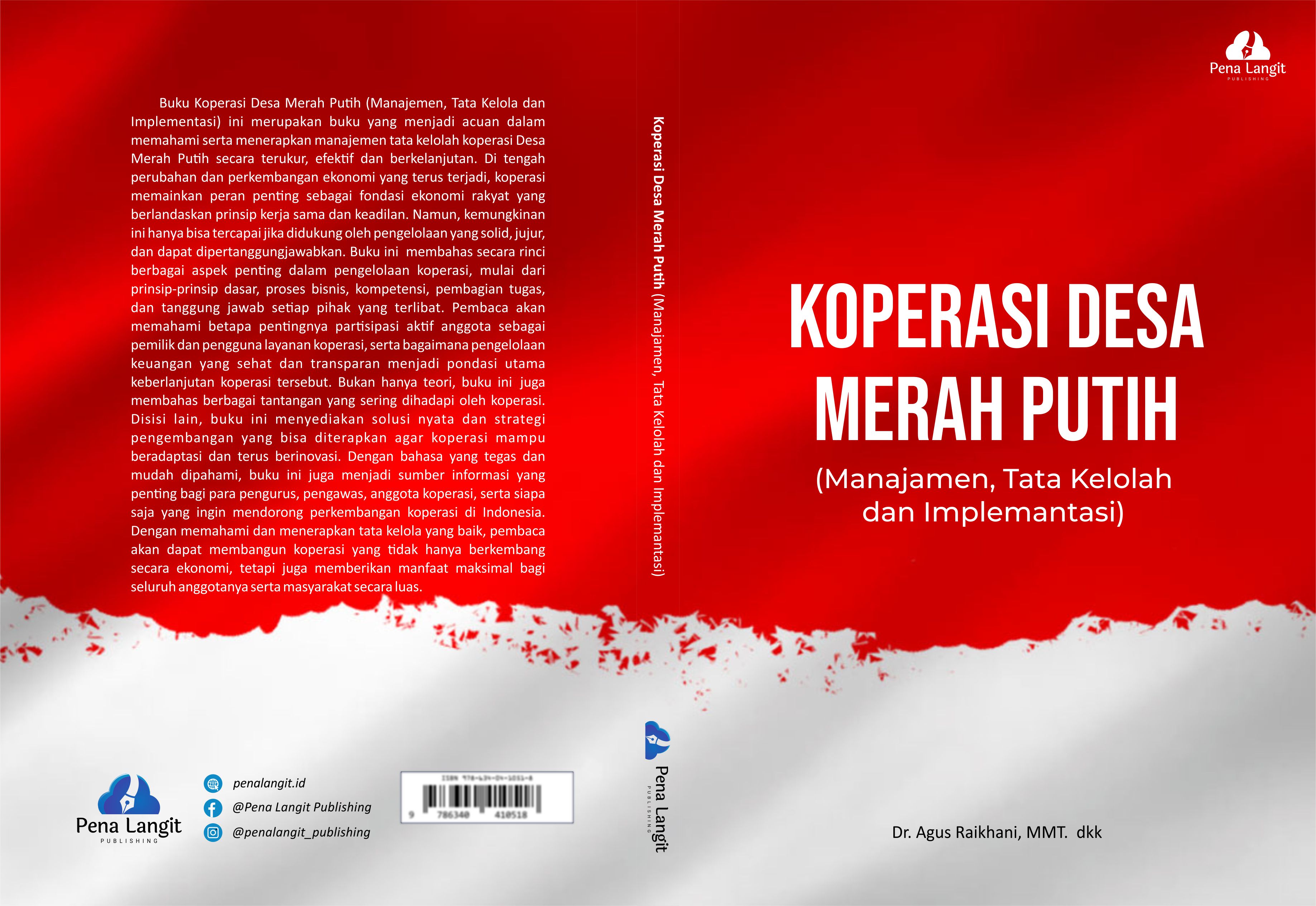 Buku Koperasi Desa Merah Putih (Manajemen, Tata Kelola dan Implementasi) ini merupakan buku yang menjadi acuan dalam memahami serta menerapkan manajemen tata kelolah koperasi Desa Merah Putih secara terukur, efektif dan berkelanjutan. Di tengah perubahan dan perkembangan ekonomi yang terus terjadi, koperasi memainkan peran penting sebagai fondasi ekonomi rakyat yang berlandaskan prinsip kerja sama dan keadilan. Namun, kemungkinan ini hanya bisa tercapai jika didukung oleh pengelolaan yang solid, jujur, dan dapat dipertanggungjawabkan. Buku ini membahas secara rinci berbagai aspek penting dalam pengelolaan koperasi, mulai dari prinsip-prinsip dasar, proses bisnis, kompetensi, pembagian tugas, dan tanggung jawab setiap pihak yang terlibat. Pembaca akan memahami betapa pentingnya partisipasi aktif anggota sebagai pemilik dan pengguna layanan koperasi, serta bagaimana pengelolaan keuangan yang sehat dan transparan menjadi pondasi utama keberlanjutan koperasi tersebut. Bukan hanya teori, buku ini juga membahas berbagai tantangan yang sering dihadapi oleh koperasi. Disisi lain buku ini menyediakan solusi nyata dan strategi pengembangan yang bisa diterapkan agar koperasi mampu beradaptasi dan terus berinovasi. Dengan bahasa yang tegas dan mudah dipahami, buku ini juga menjadi sumber informasi yang penting bagi para pengurus, pengawas, anggota koperasi, serta siapa saja yang ingin mendorong perkembangan koperasi di Indonesia. Dengan memahami dan menerapkan tata kelola yang baik, pembaca akan dapat membangun koperasi yang tidak hanya berkembang secara ekonomi, tetapi juga memberikan manfaat maksimal bagi seluruh anggotanya serta masyarakat secara luas.